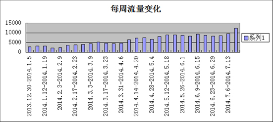 每周流量不断提升,由低的每周2191,提升到每周12321.